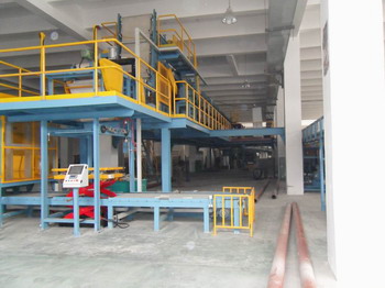 通過膠片冷卻聯(lián)動線的浸漬、掛膠風(fēng)冷、擺放疊片給下道工序。