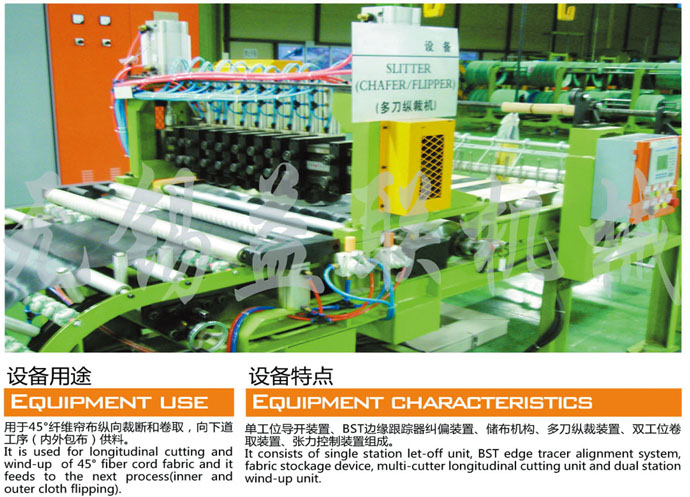 簾布縱裁的線速度 Linear speed of cord fabric longitudinal cutting |